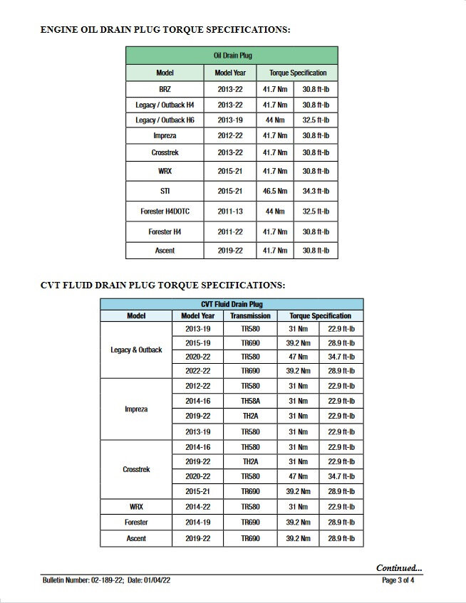 Вот про пробки https://static.oemdtc.com/TSB/MC-10207172-0001.pdf Согласно SERVICE BULLETIN номера актуальны для 2011-22MY Forester/